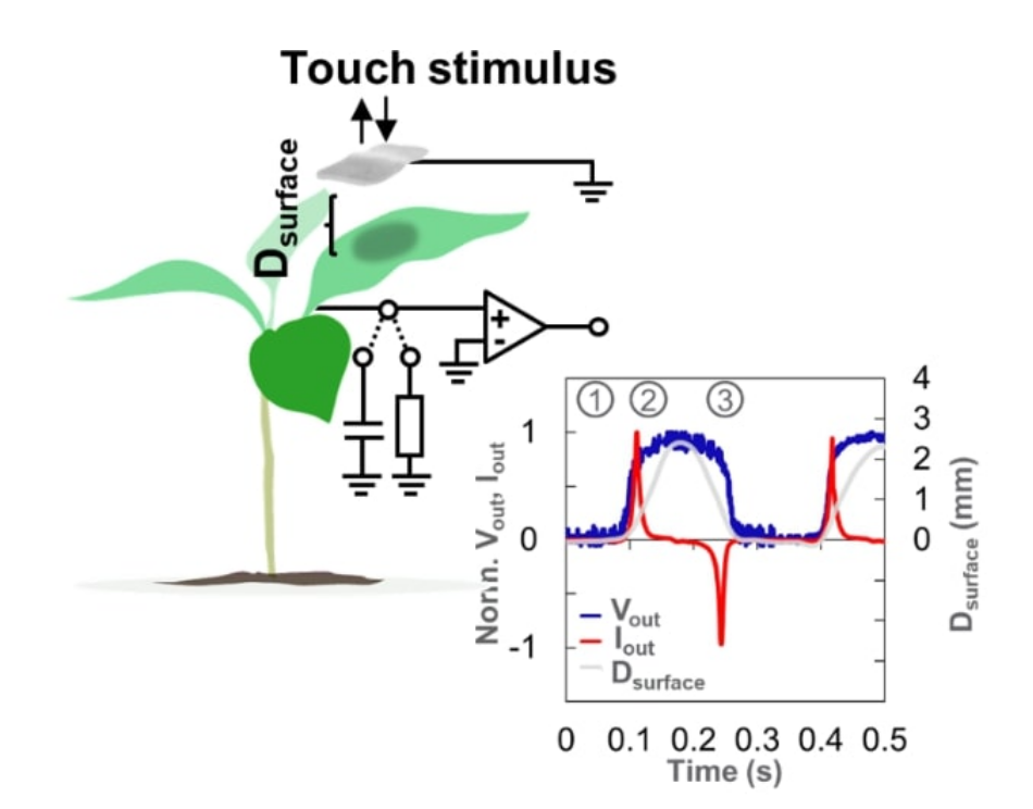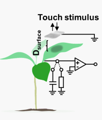 Plants act as an internal generator structure that converts mechanic into electric energy (bio-hybrid energy source) during a touch stimulus by a mechanism known as contact or tribo-electrification.