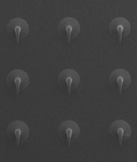 A bioinspired microfabricated reversible attachment material. A flexible and biodegradable material developed using two-photon lithography technology.